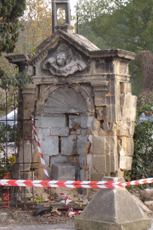 En mi-septembre, un guide touristique Japonais M. Tetsu Nogata, m'a adressé une photo qui montre l'oratoire reconstruit. Passant à Aix début octobre, j'ai pris des photos, ci-jointes. On note que l'oratoire a été reculé, éloigné de la N7 pour éviter d'être à nouveau accidenté. La grille de protection est posée, il reste maintenant à poser la statue dans la niche.