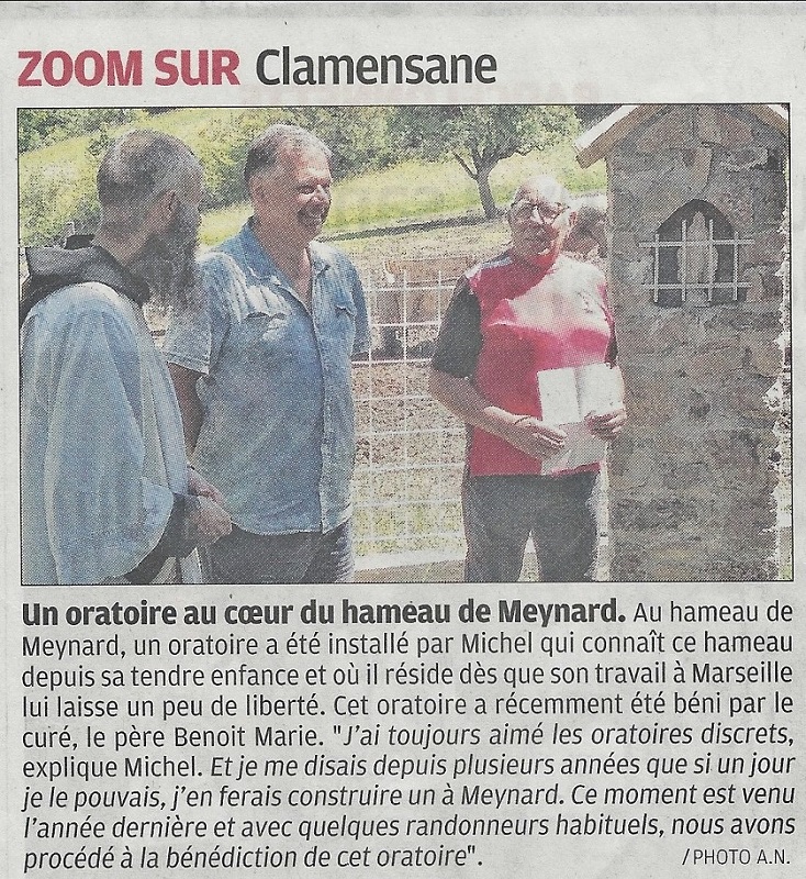 NETTOYAGE ET RAFFRAICHISSEMENTS Courant juin, Lucien Boldrin, notre Vice-président restaurateur et constructeur d'oratoires bien connu, lors d'un séjour à Saint-Etienne-de-Tinée, a découvert et dégagé un oratoire oublié, nous a signalé la restauration de la toiture d'un autre oratoire et à Saint-Sauveur-Sur-Tinée, a nettoyé et rafraîchit les peintures de la niche et de la grille d'un oratoire.